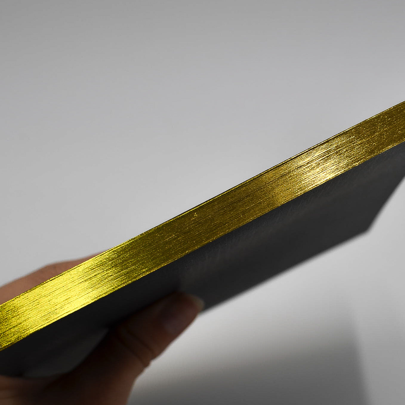 These perfect bound journals are great for easy note taking! They have high quality, recycled paper and black or white cover. This product stands out with its gold gilding and top quality paper.