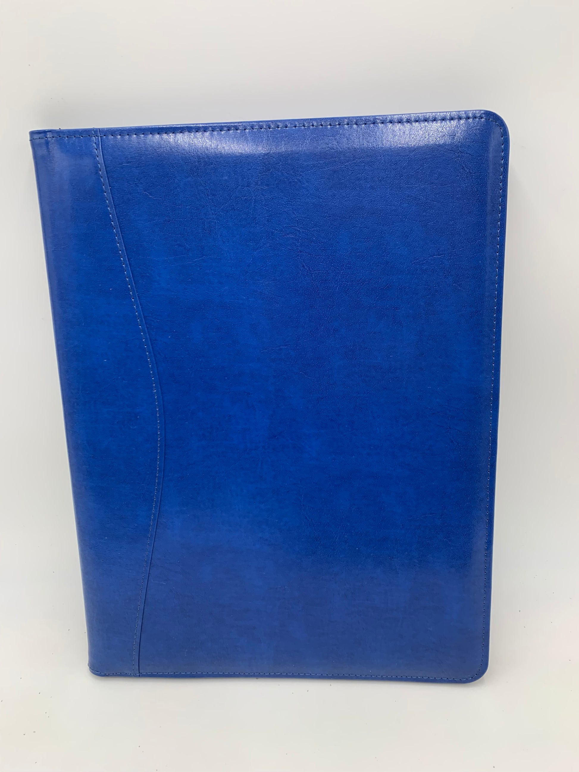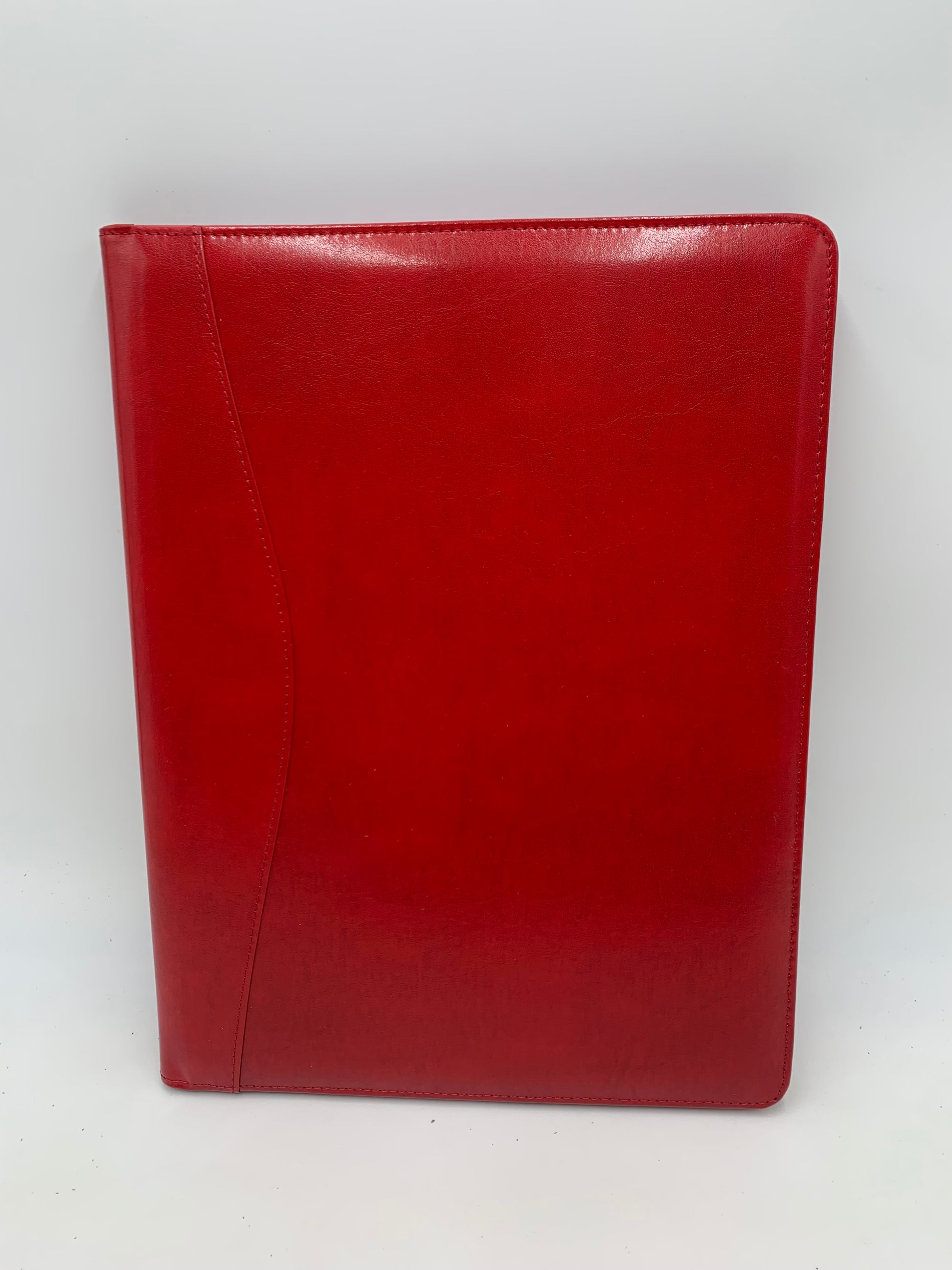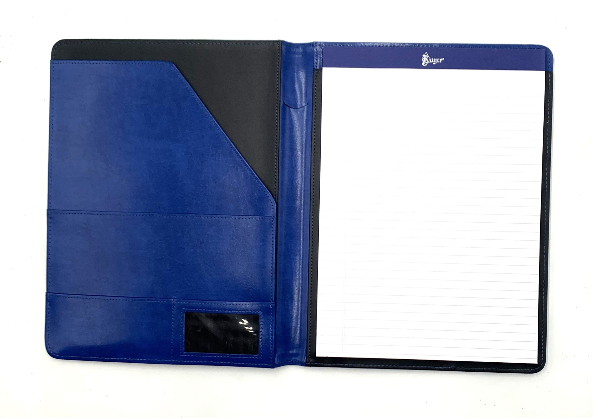 The Bonded leather padfolio has an inside document flap, document pocket, business card pocket, an ID window and pen slot (no pen included). An 8 1/2" x 11" ruled pad is included.